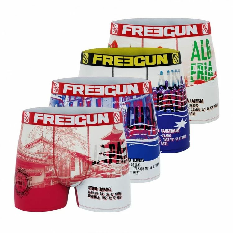FREEGUN Lot De 4 Boxers Homme Flag & Cities